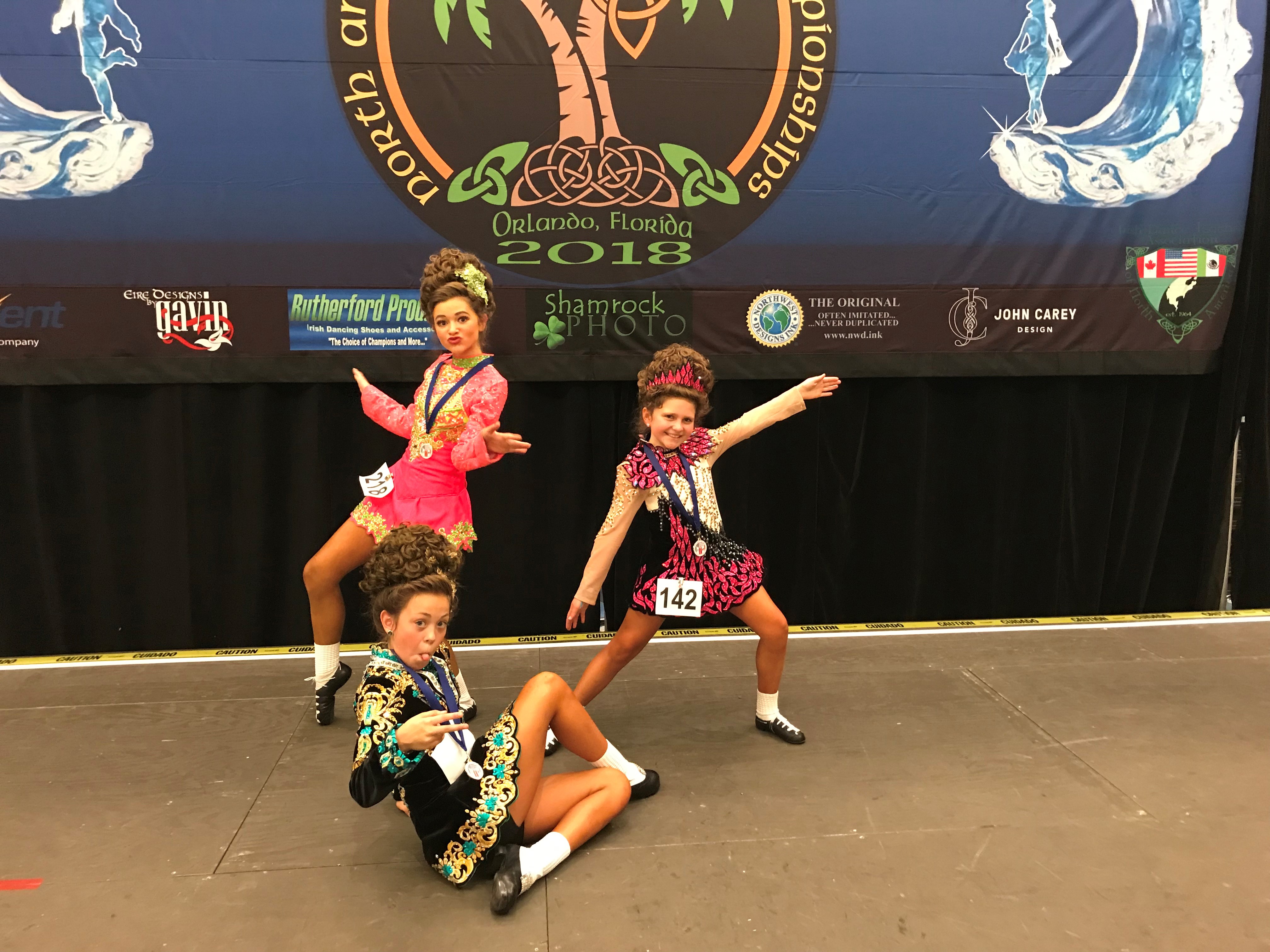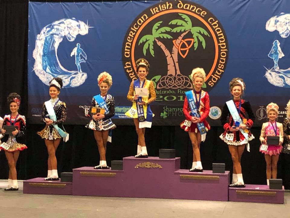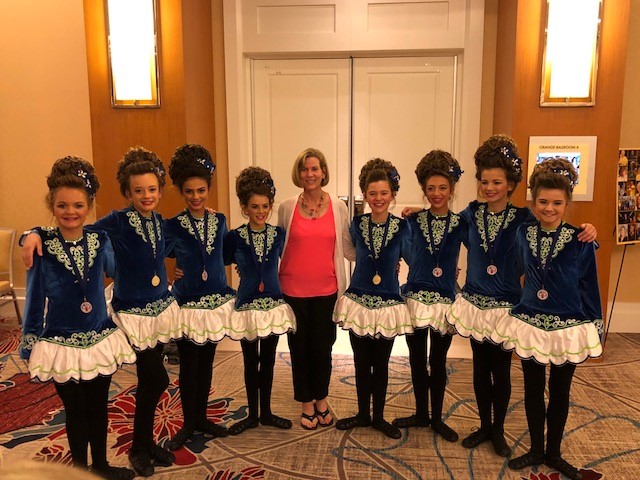 Congratulations to all who represented our school so well in Orlando! Overall, our school had another great year, with 30 of our 45 dancers receiving an award (67%), and of those, 14 – almost half – placed high enough to qualify for the 2019 World Championships!! This means that a third of our dancers participating at the National level this year are on their way to Greensboro, NC next spring! Special congratulations to our dancers in the top 5: Brigid O’Connor, National Champion, Girls U13B; Sadie Bucknam, 3rd place Girls U17B; Charlotte McDaniel, 5th place Girls U13B, and our U13 Girls Ceili team, 4th place, along with our other top 10 finishers Bailey Bartel (7th, U17A), Charley Finlay (10th, U10B) and Sarah Krein (10th, U19B). We are so proud of how well they performed under pressure!